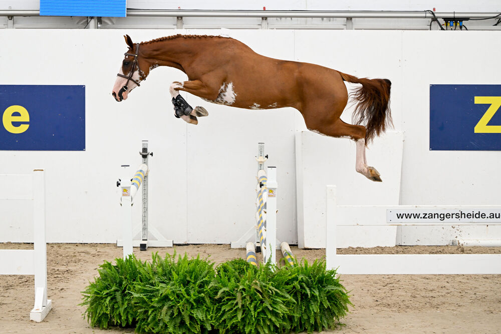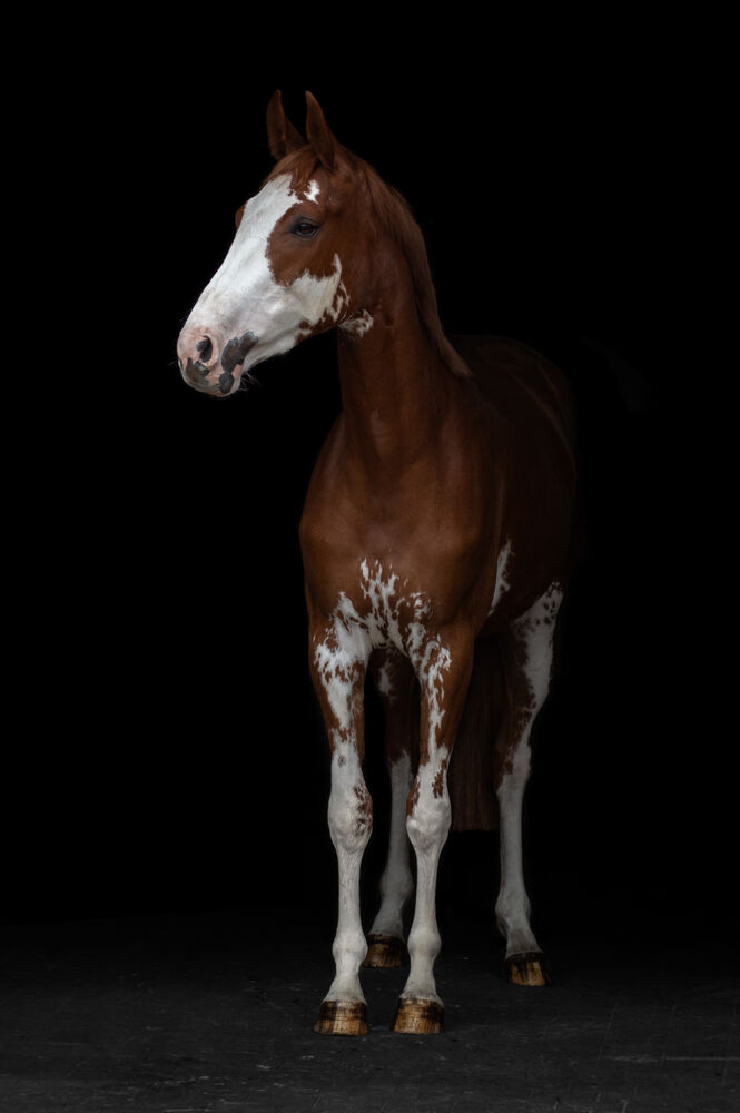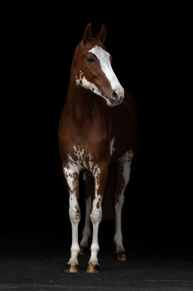 Amoureux de Toi XQ Z, offspring of Toujours l'amour who jumped up to 155 classes, captivates with its striking appearance. The unique markings of this horse are truly remarkable. While jumping, Amoureux de Toi shows remarkable quality, demonstrating both skill and spirit. Working with such a horse is a dream, and as a breeder, it fills you with pride.